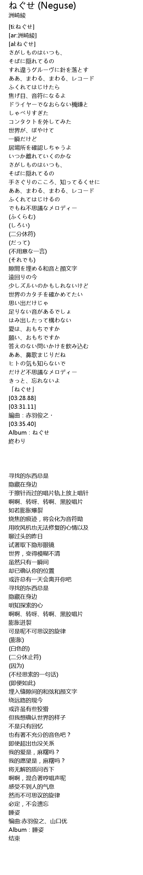| [00:14.78] | ああ、まわる、まわる、レコード |