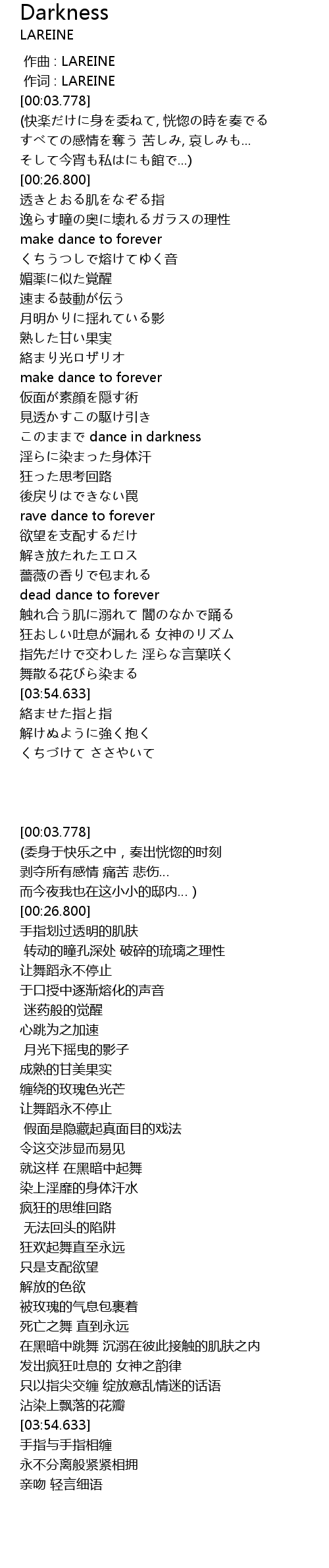 | [03:23.477] | 触れ合う肌に溺れて 闇のなかで踊る |
