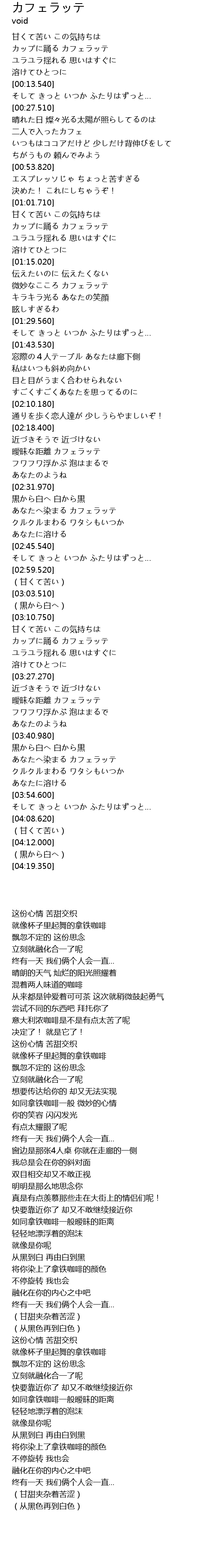 | [02:35.890] | あなたへ染まる カフェラッテ |