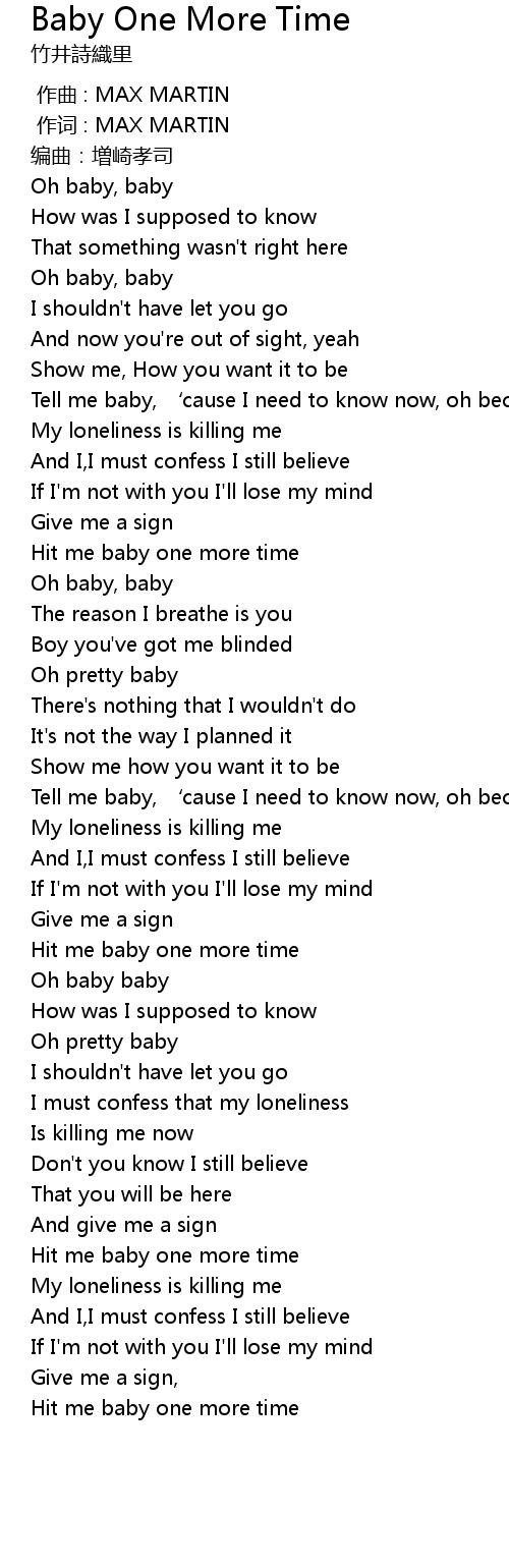 | [03:00.80] | Hit me baby one more time |