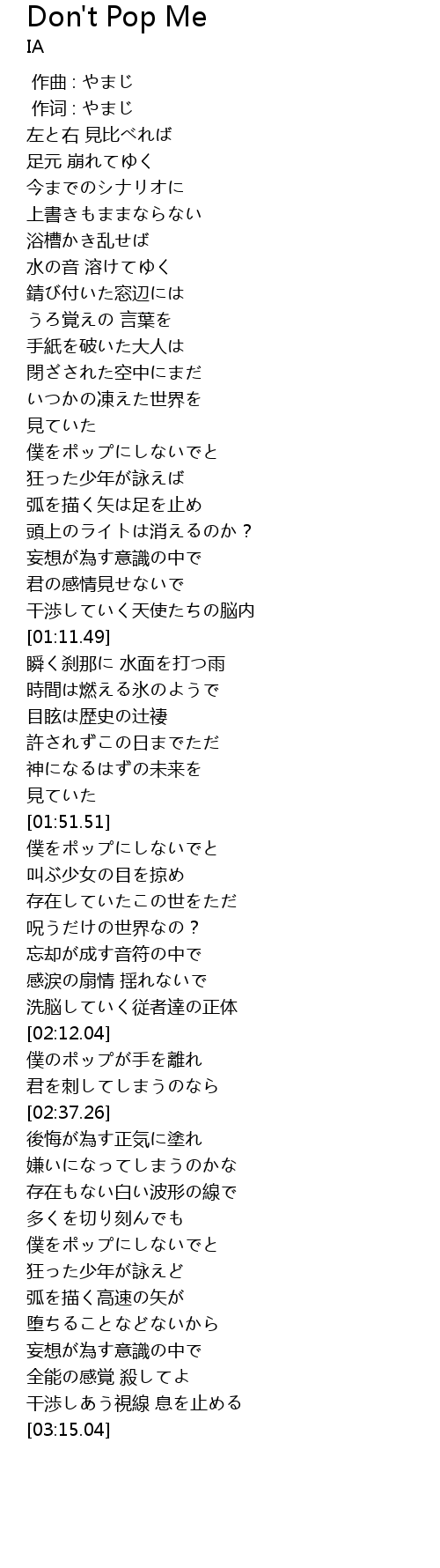 | [03:08.12] | 干渉しあう視線 息を止める |