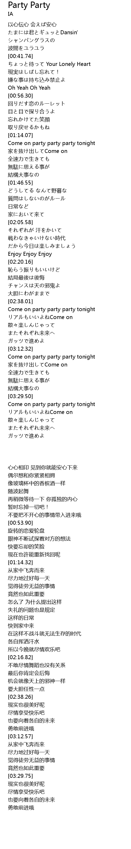 | [03:12.57] | Come on party party party tonight |