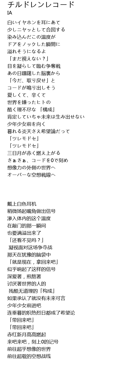 | 歌曲 | チルドレンレコード |