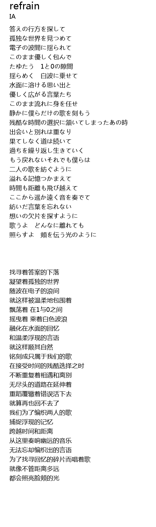 | 歌曲 | refrain |