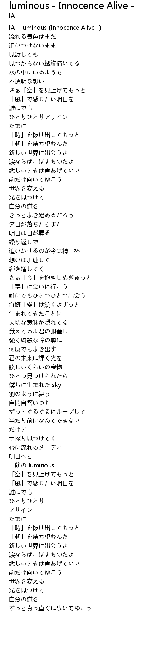 | [00:00.36] | IA - luminous (Innocence Alive -) |