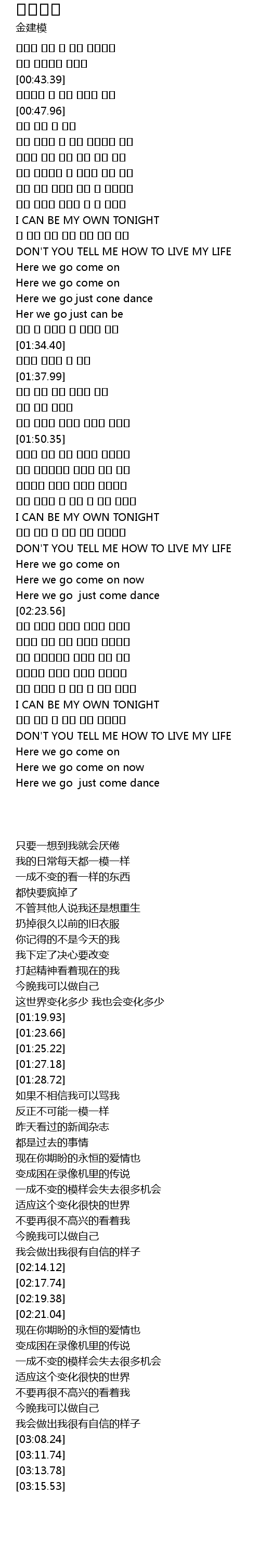 | [02:06.45] | I CAN BE MY OWN TONIGHT |