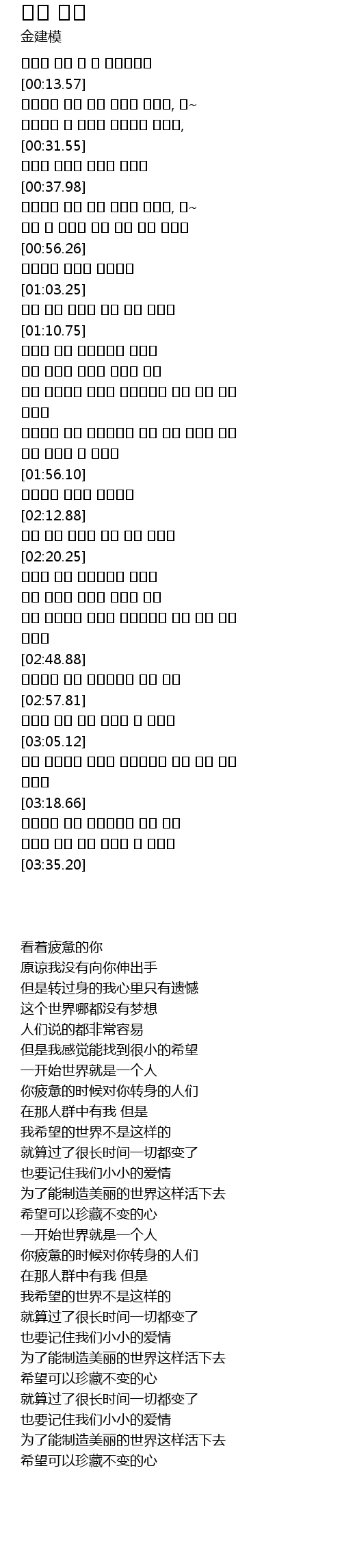 | [00:49.77] | 찾을 수 있을것 같은 아주 작은 바램들 |
