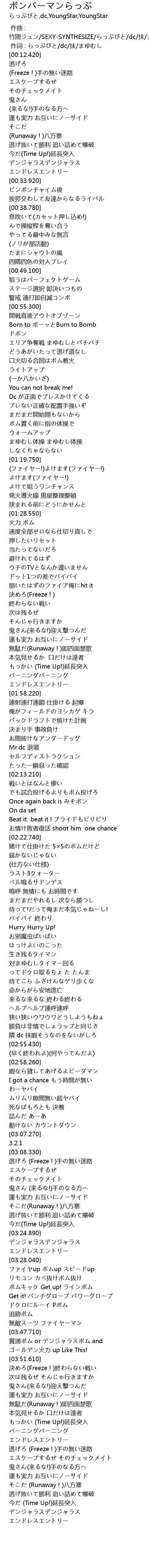 | [00:57.870] | Born to ボーッとBurn to Bomb |