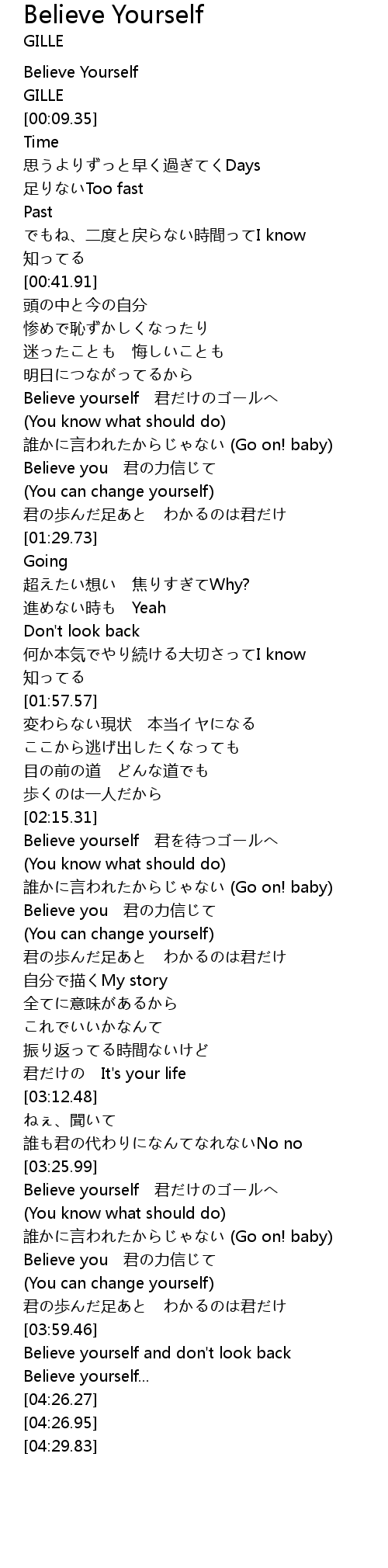 | [03:27.76] | Believe yourself 君だけのゴールへ |