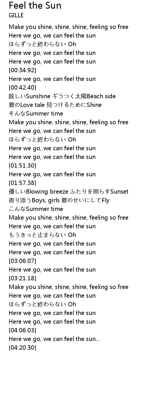 | [04:00.67] | Here we go, we can feel the sun |