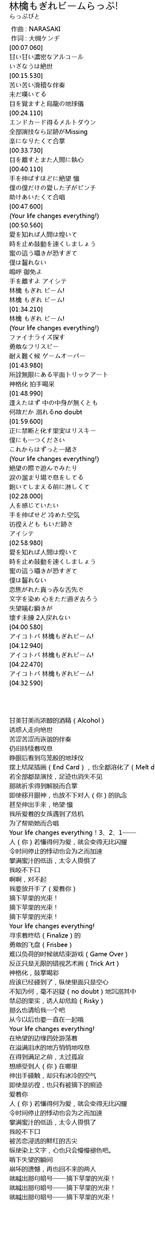 | [04:17.950] | アイコトバ 林檎もぎれビーム! |