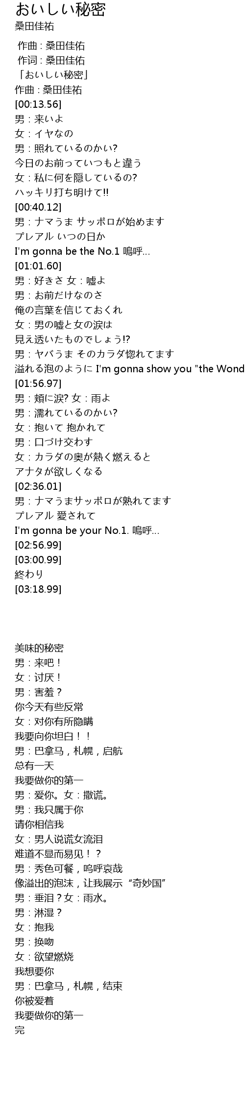 | [00:00.56] | 「おいしい秘密」 |