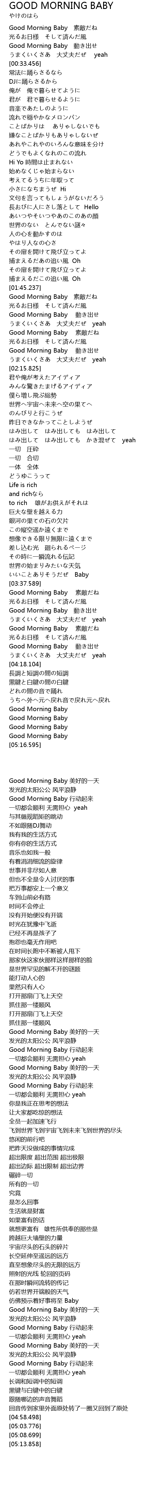 | [04:12.593] | Good Morning Baby 行动起来 |