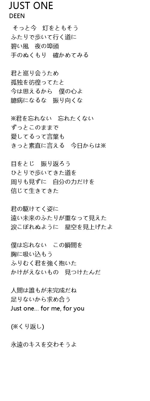 | 歌曲 | JUST ONE |