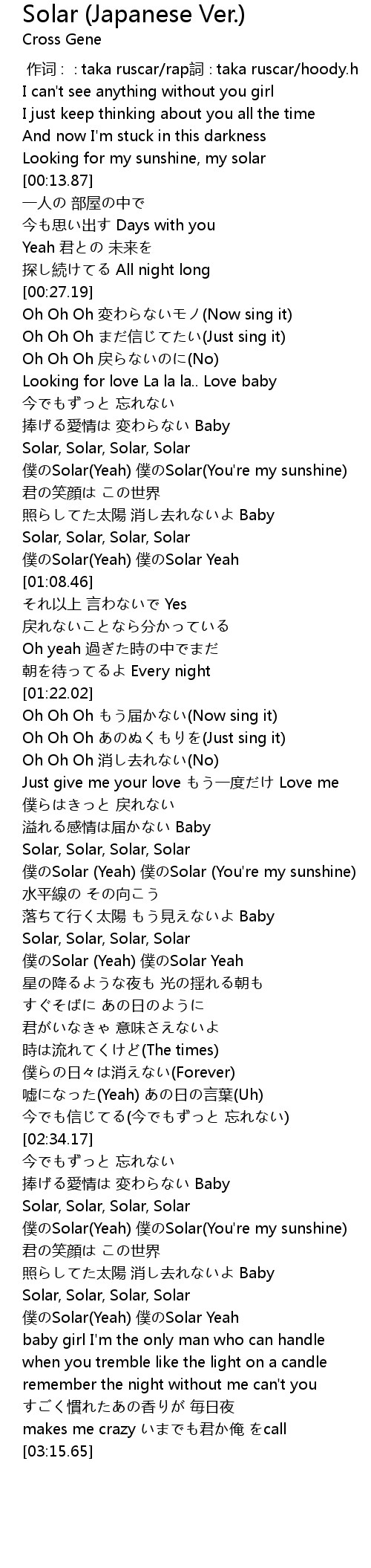 | [01:56.74] | Solar, Solar, Solar, Solar |