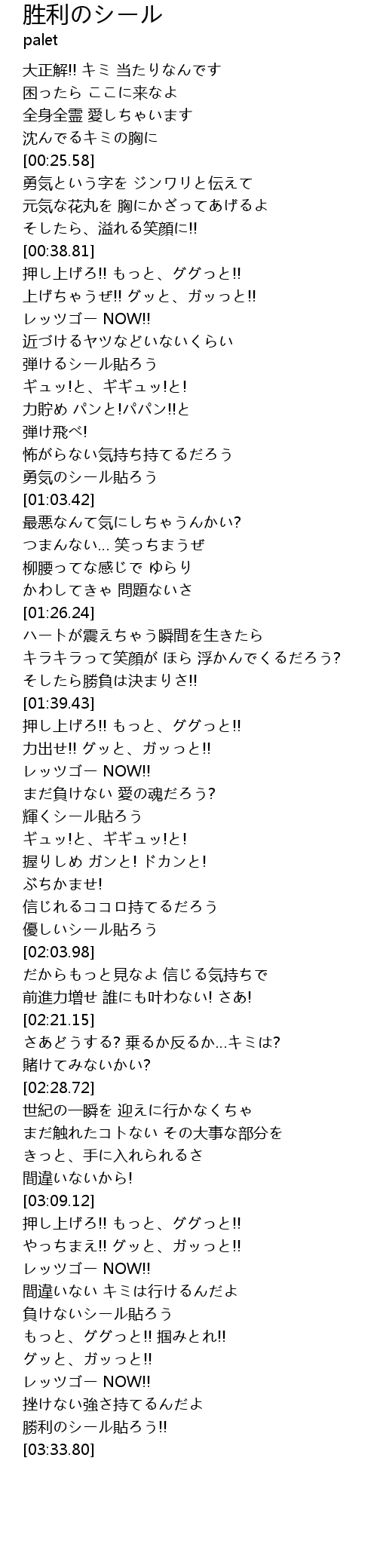| [03:31.46] | 勝利のシール貼ろう!! |
