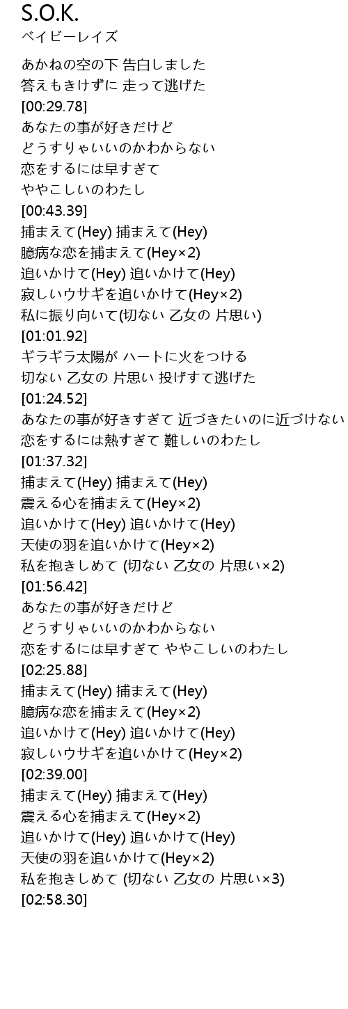 | [02:27.35] | 捕まえて(Hey) 捕まえて(Hey) 臆病な恋を捕まえて(Hey×2) |