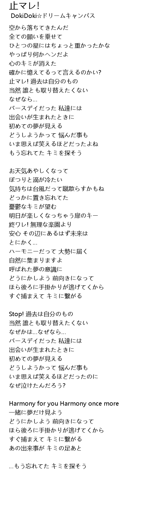 | 歌曲 | 止マレ! |