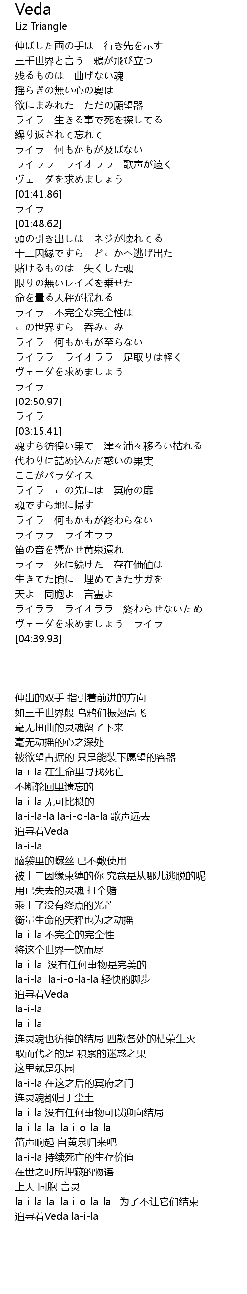 | [04:24.66] | ヴェーダを求めましょう ライラ |