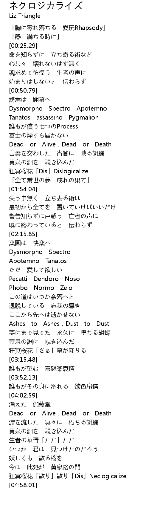 | [04:46.96] | 狂冥桜花「散り」散り「Dis」Neclogicalize |
