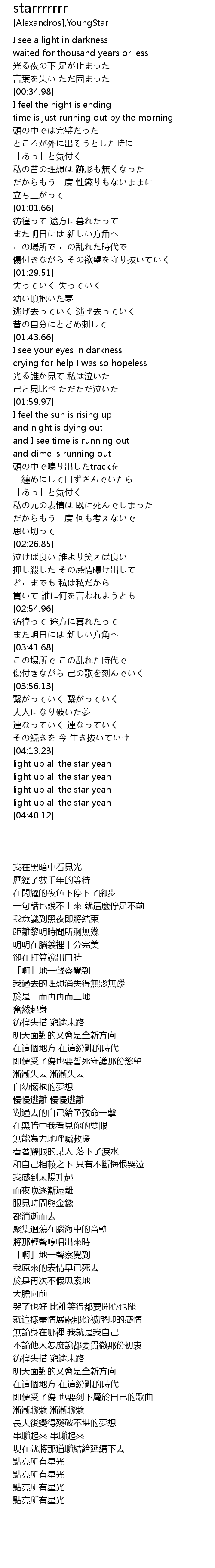 | [04:33.02] | light up all the star yeah |