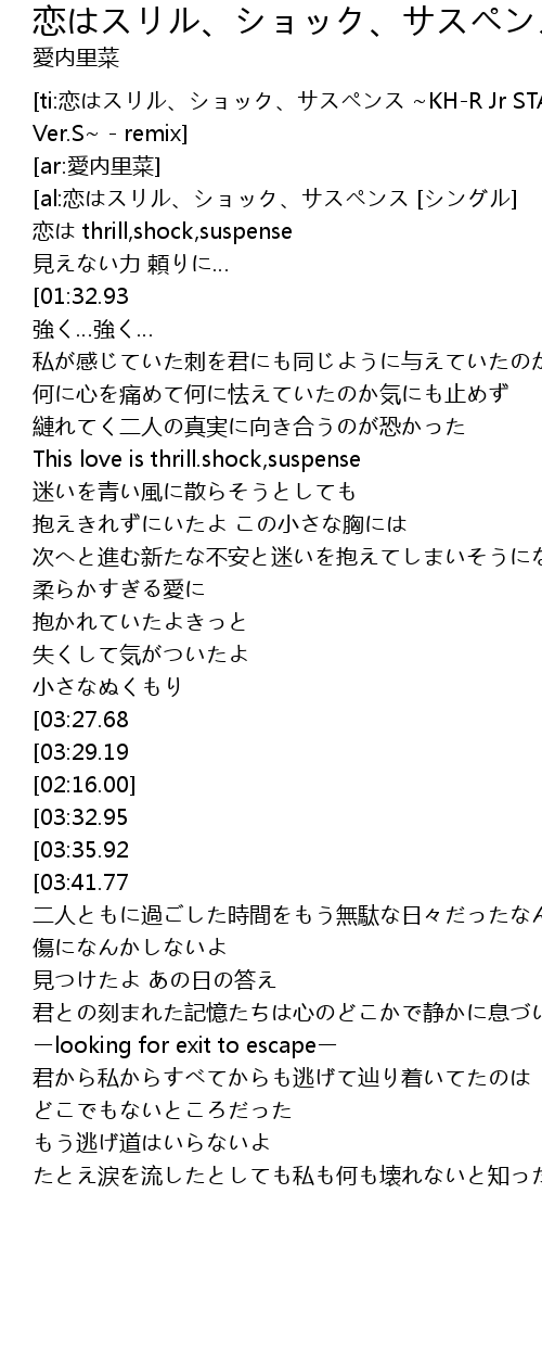 | [02:24.86][03:41.77] | This love is thrill,shock,suspense |