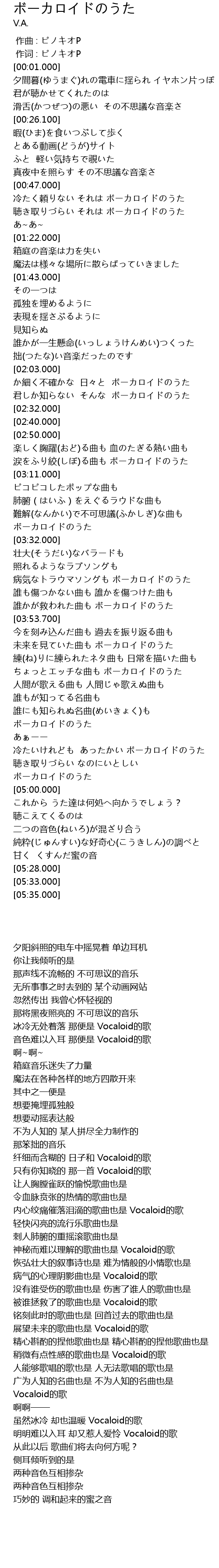 | [03:38.000] | 病气的心理阴影曲也是 Vocaloid的歌 |