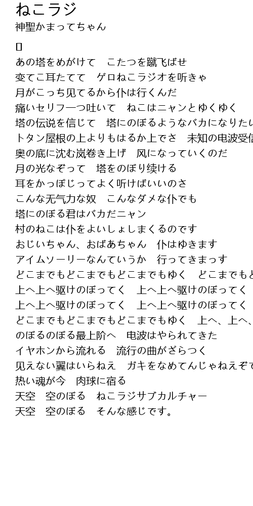 | 天空 空のぼる ねこラジサブカルチャー | |