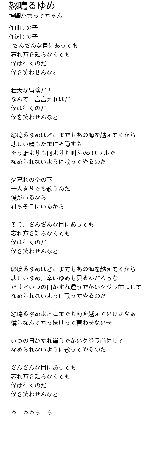 怒鳴るゆめよどこまでも海を越えていけよなぁ! |