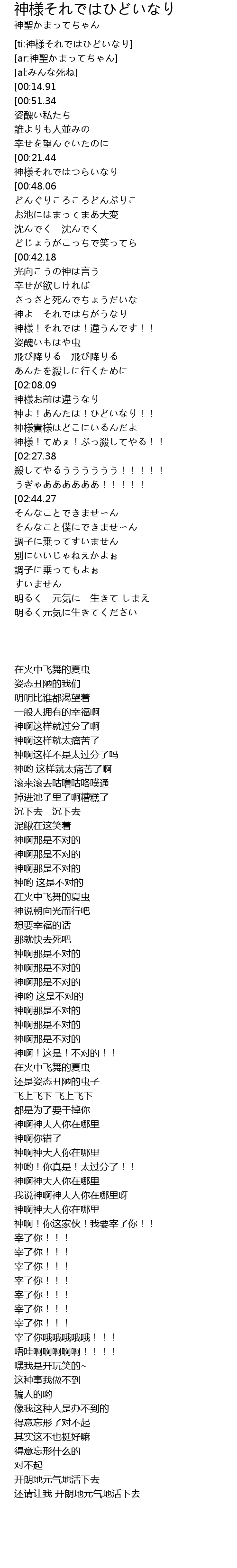 | [02:22.92] | 神様!てめぇ!ぶっ殺してやる!! |