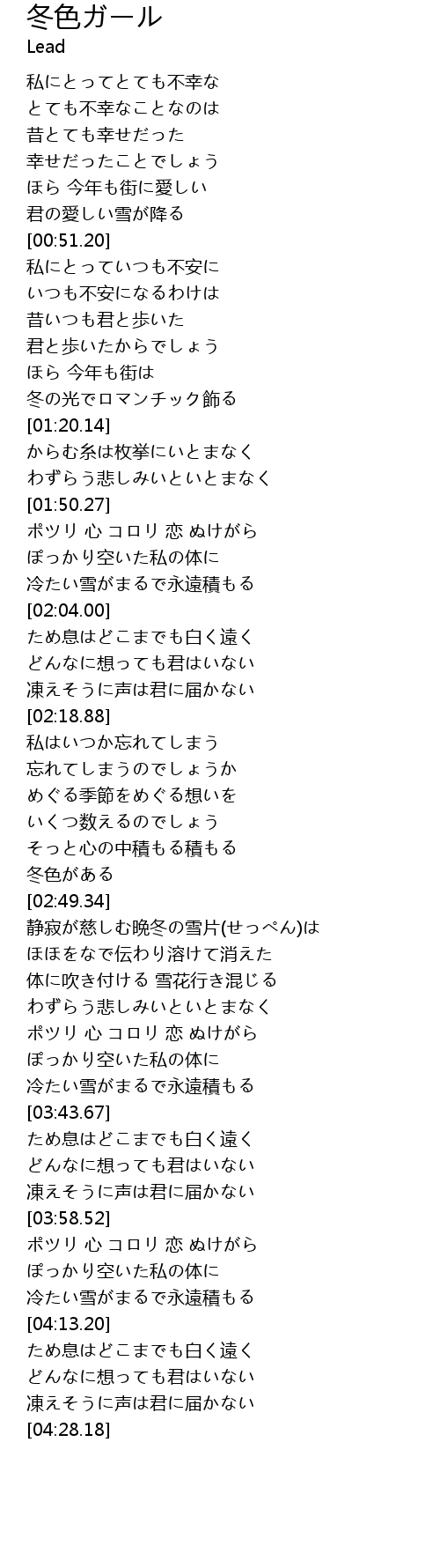 | [00:43.69] | 君の愛しい雪が降る |