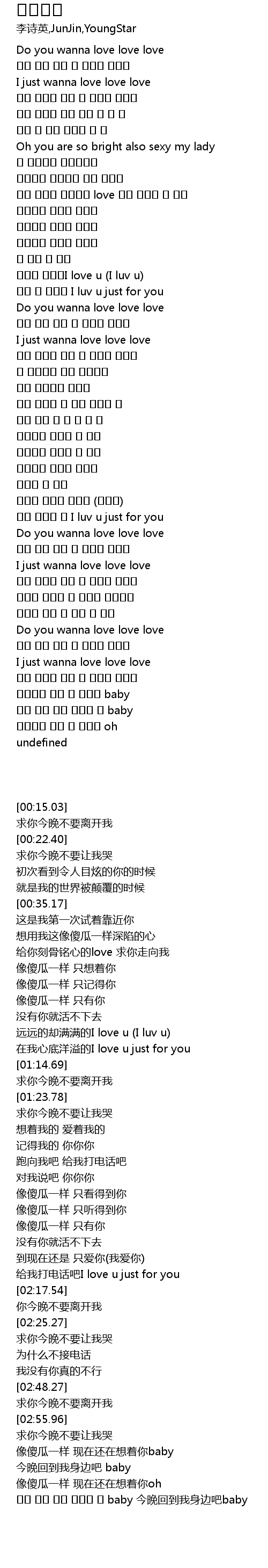 | [03:15.96] | 오늘 밤엔 내게 돌아와 줘 baby 今晚回到我身边吧baby |