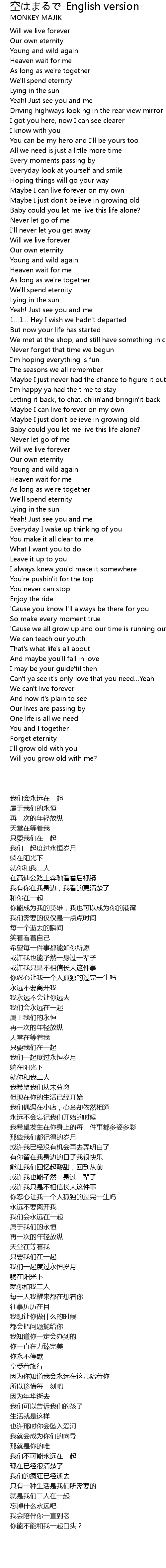 | [00:05.00] | 我们会永远在一起 |