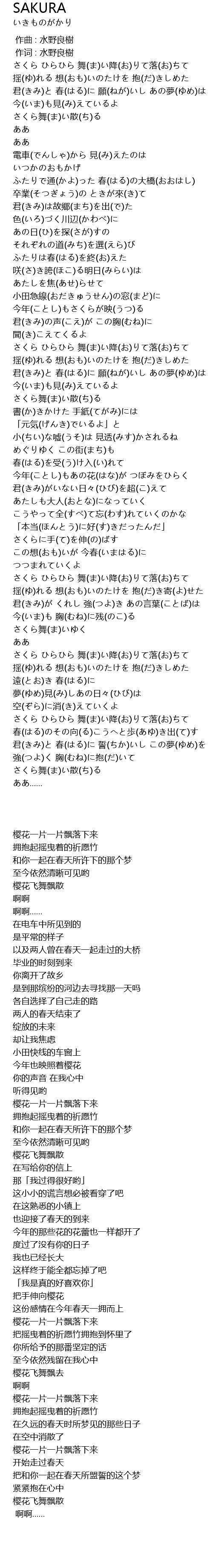 | [00:01.700] | さくら ひらひら 舞(ま)い降(お)りて落(お)ちて |