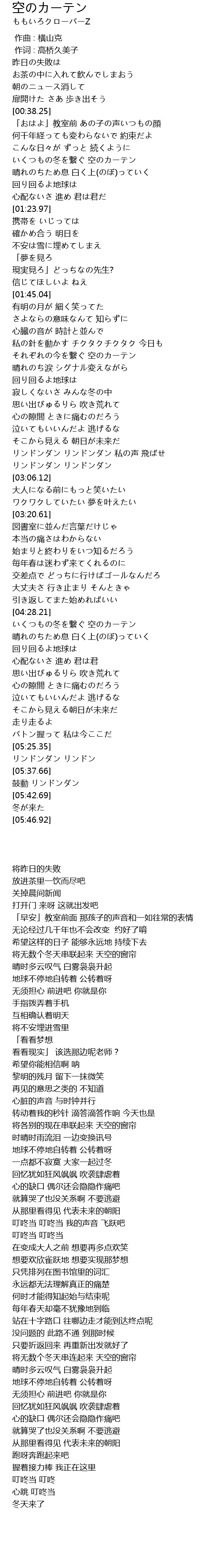 | [04:32.15] | 将无数个冬天串连起来 天空的窗帘 |