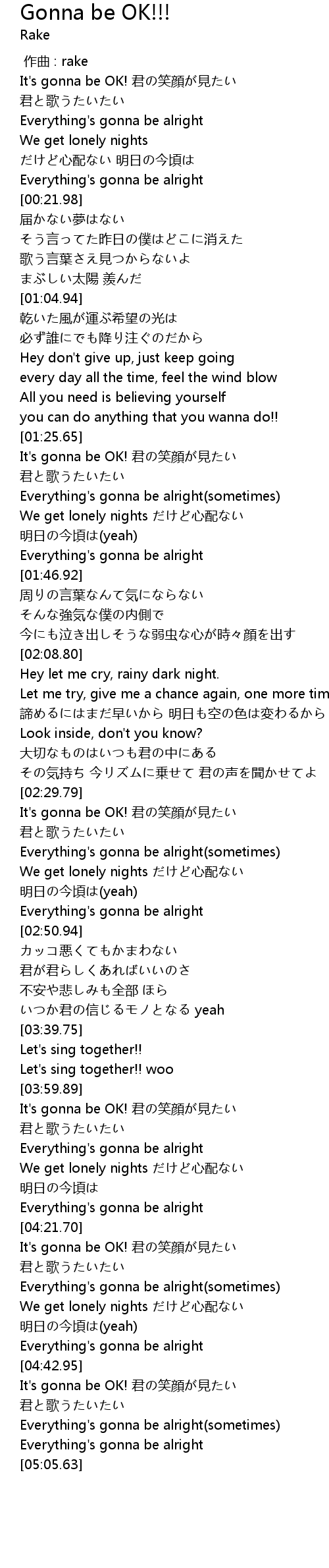 | [00:00.75] | It's gonna be OK! 君の笑顔が見たい |