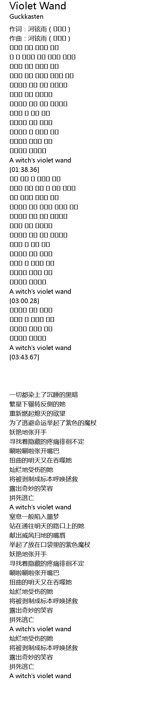 | [02:54.97] | A witch' s violet wand |