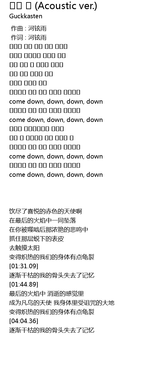 | [03:34.81] | 새가 된 천사에내 안의 저주의 땅 |