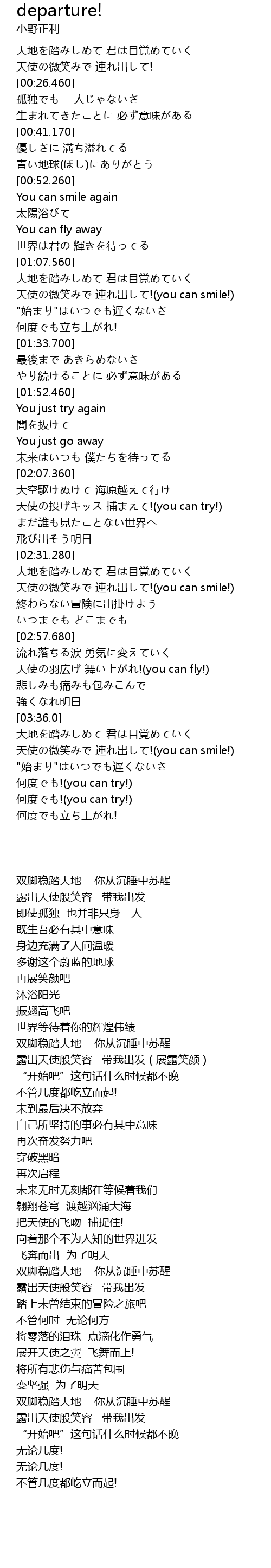 | [01:13.970] | 露出天使般笑容 带我出发(展露笑颜) |
