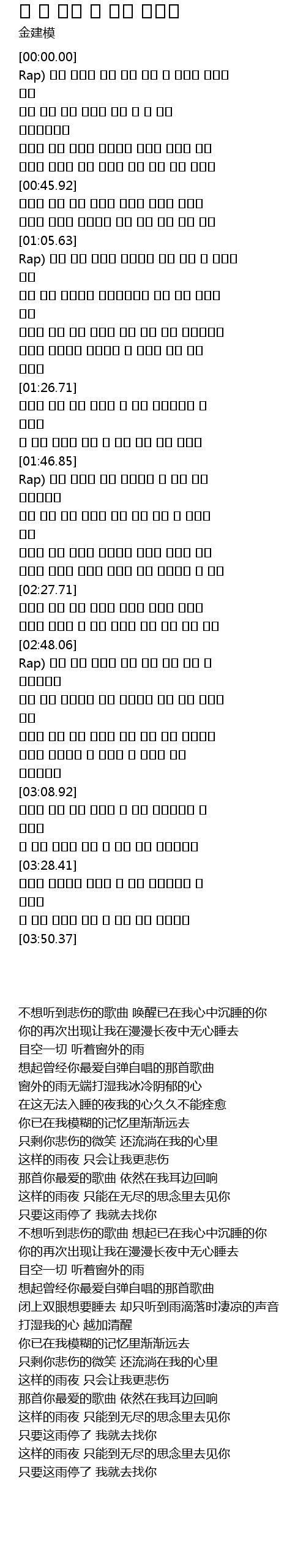 | [02:58.71] | 이렇게 비가 오는 밤이면 너는 나를 더욱 슬프게해 |