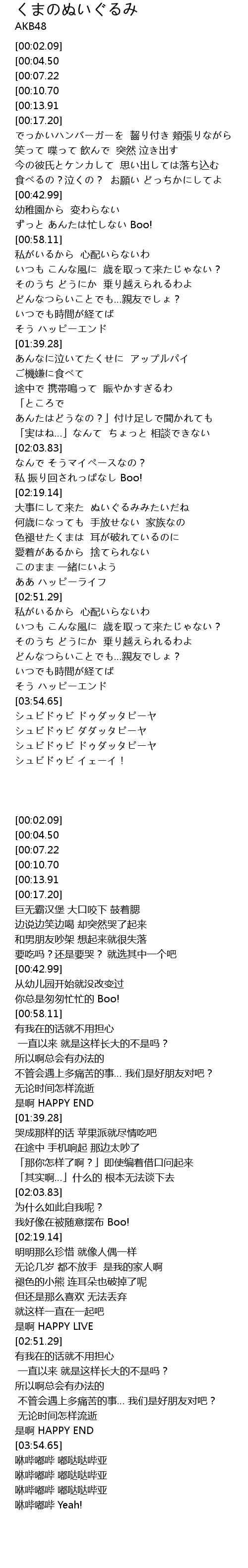 | [02:19.43] | 大事にして来た ぬいぐるみみたいだね |