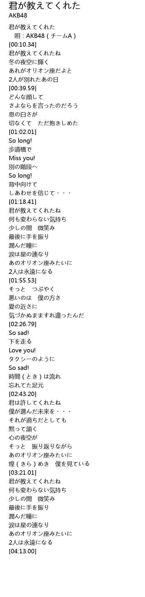 | [00:57.40] | 切なくて ただ抱きしめた |