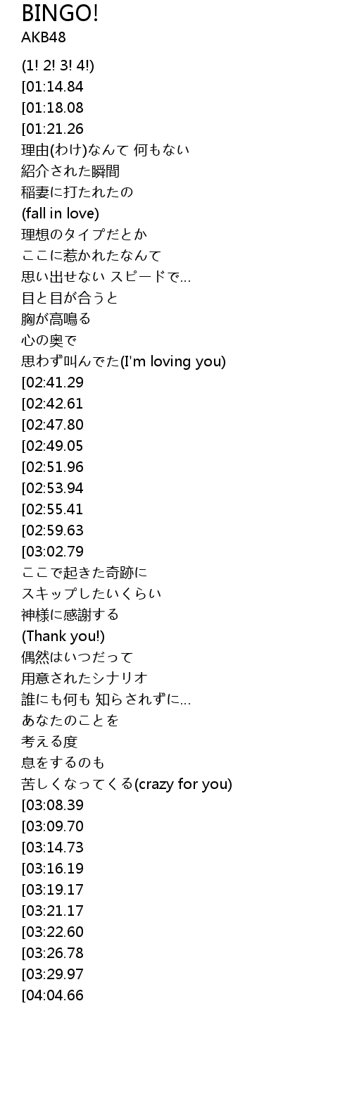 | [01:02.01][02:53.94] | BINGO! BINGO! |