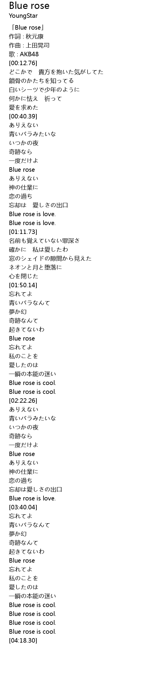 | [00:00.76] | 「Blue rose」 |