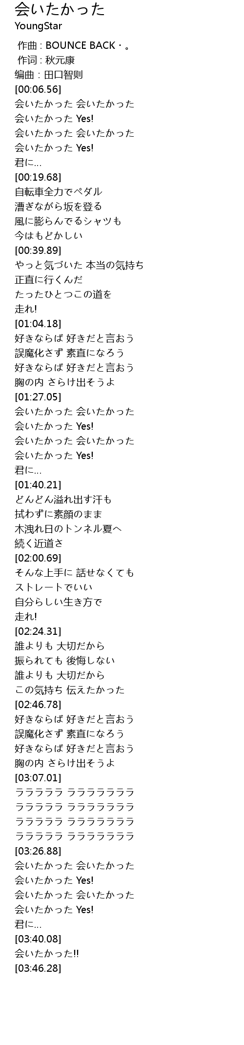 | [00:42.63] | やっと気づいた 本当の気持ち |