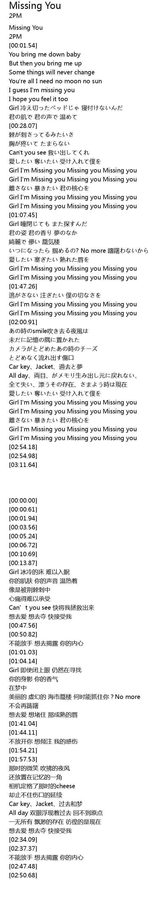 | [02:50.68] | Girl I' m Missing you Missing you Missing you |