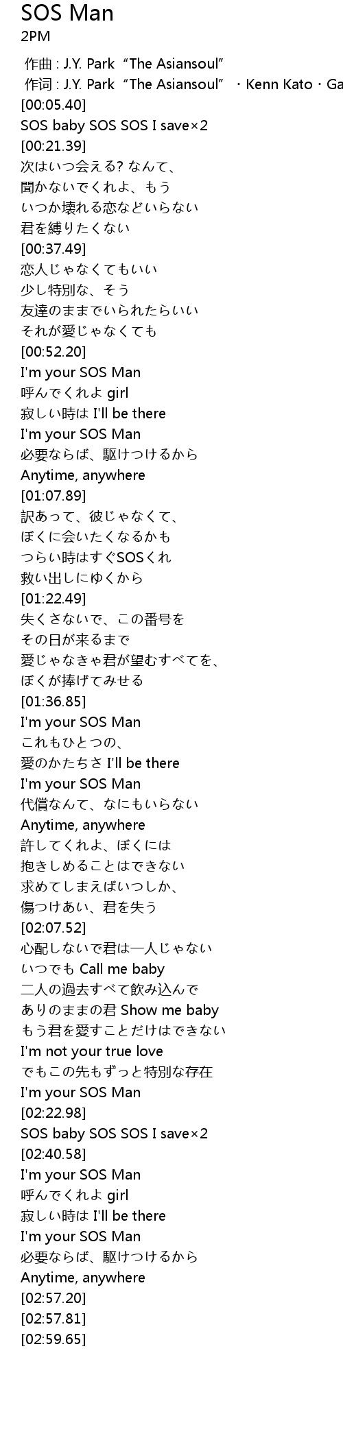 | [02:26.81] | SOS baby SOS SOS I save 2 |
