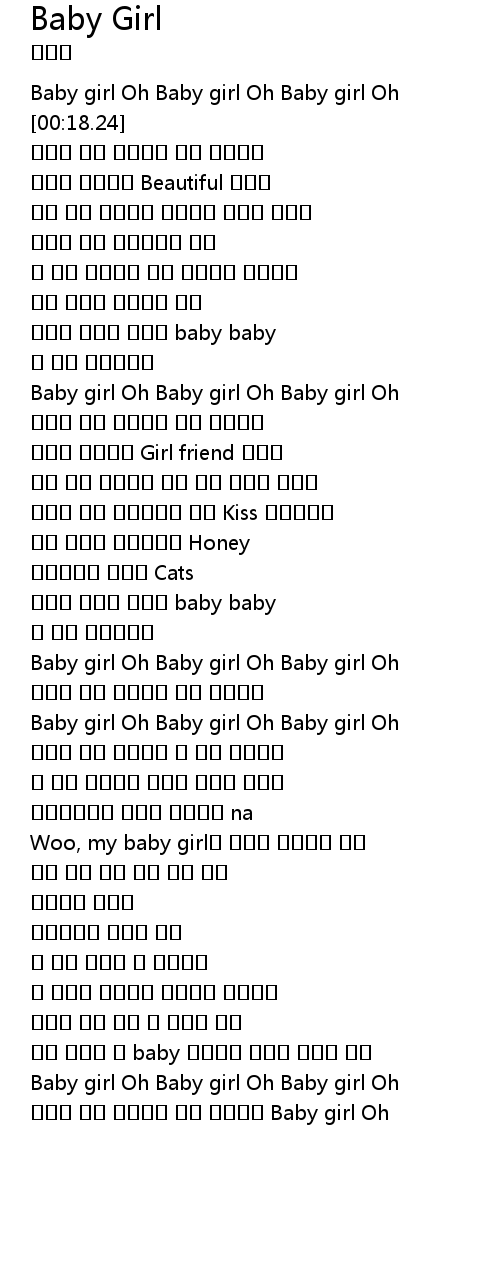 | [00:07.38] | Baby girl Oh Baby girl Oh Baby girl Oh |