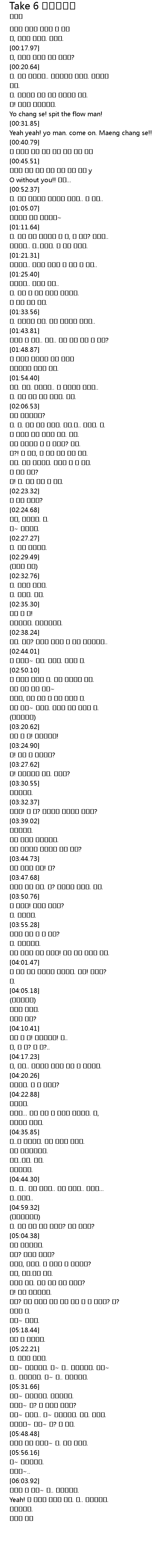 | [01:12.42] | 야. 근데 거기 헤어지면 할 때, 그 머지? 밴딩을.. |