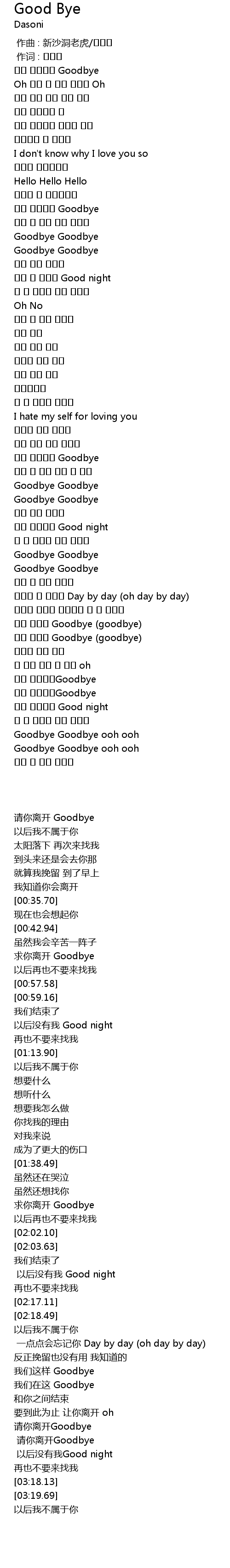 | [03:18.13] | Goodbye Goodbye ooh ooh |